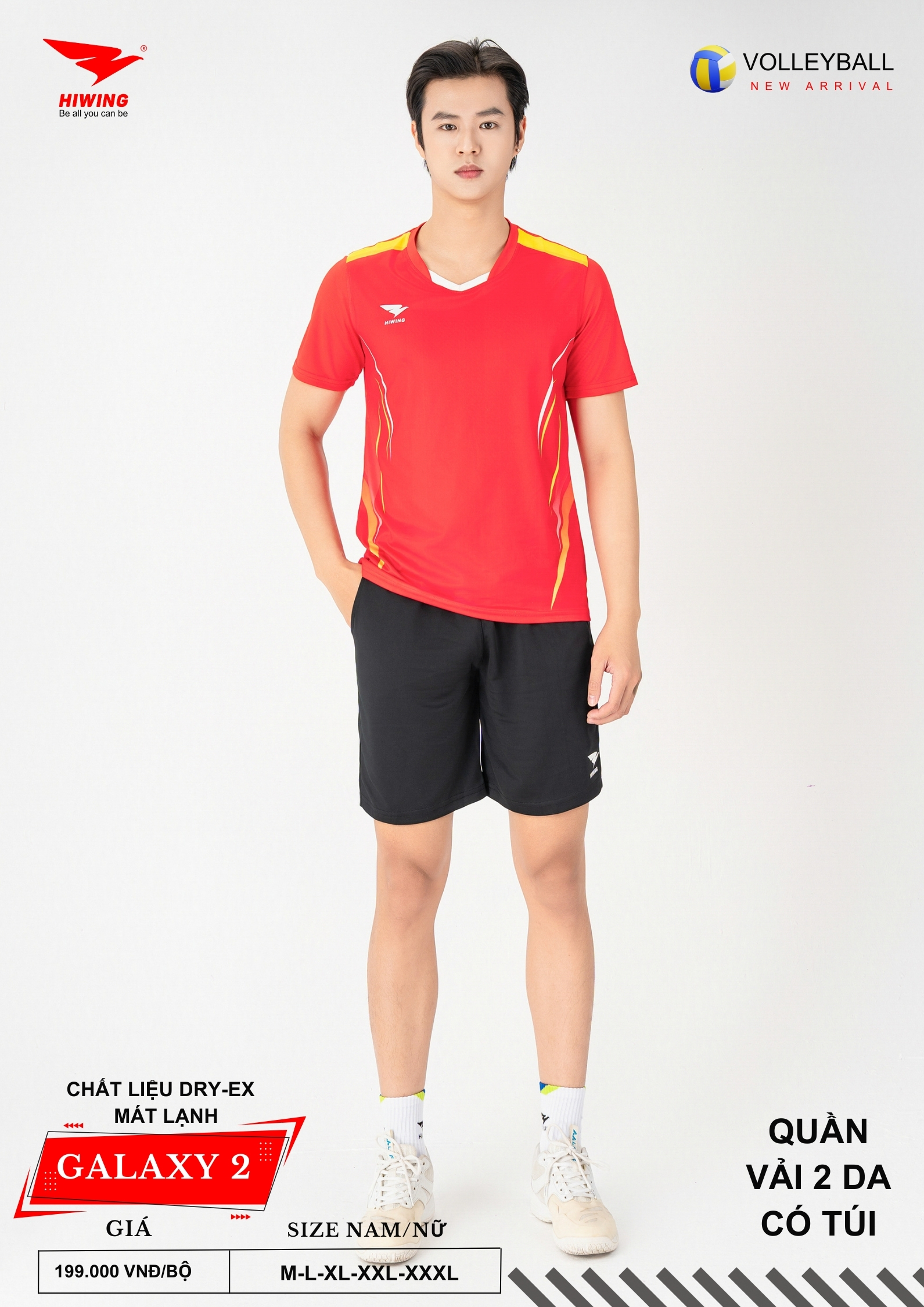 Bộ quần áo bóng chuyền Hiwing Galaxy 2 là dòng sản phẩm mới nhất đến từ thương hiệu Hiwing, được thiết kế dành riêng cho thi đấu và tập luyện chuyên nghiệp. Sở hữu form chuẩn nam – nữ, chất liệu Dry-Ex cao cấp cùng mức giá chỉ 199.000 VNĐ/bộ, Galaxy 2 là lựa chọn lý tưởng cho các đội bóng chuyền phong trào, câu lạc bộ và đồng phục thi đấu.