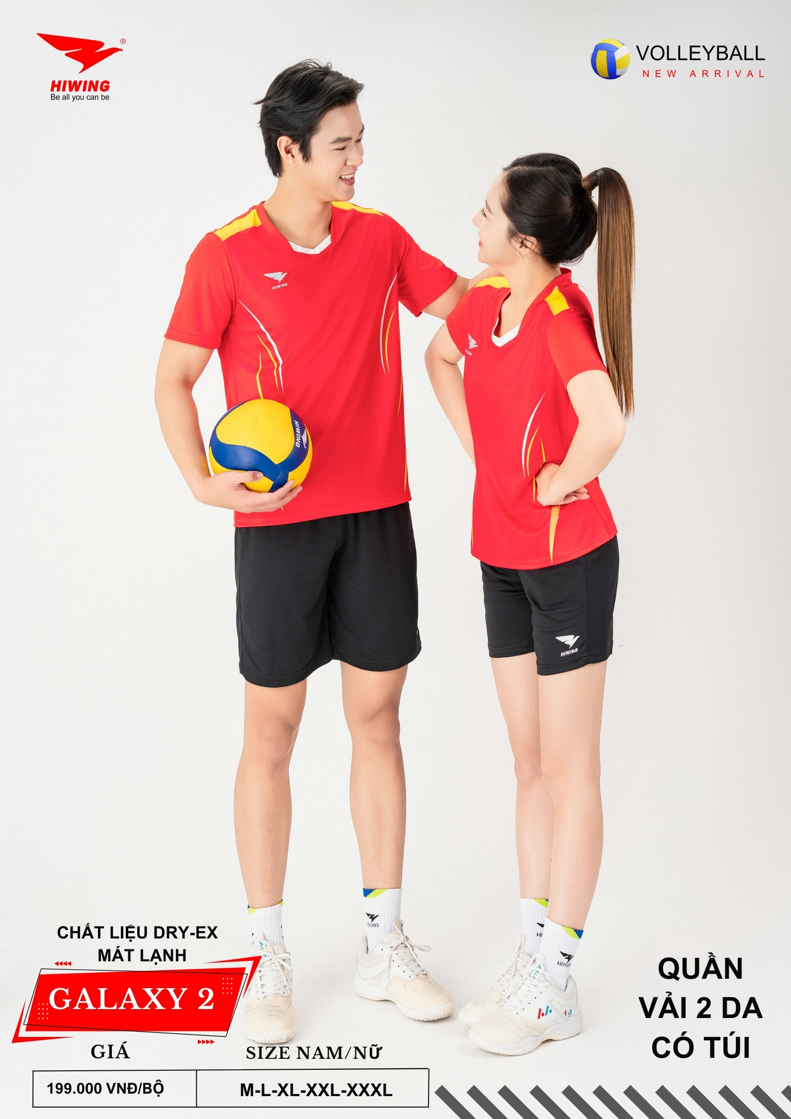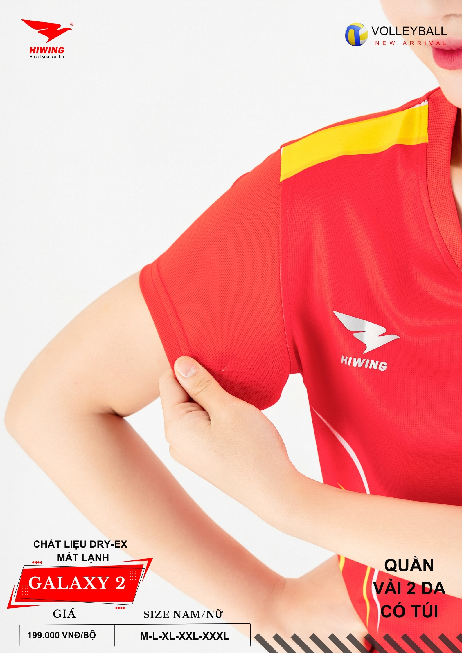 Bộ quần áo bóng chuyền Hiwing Galaxy 2 là dòng sản phẩm mới nhất đến từ thương hiệu Hiwing, được thiết kế dành riêng cho thi đấu và tập luyện chuyên nghiệp. Sở hữu form chuẩn nam – nữ, chất liệu Dry-Ex cao cấp cùng mức giá chỉ 199.000 VNĐ/bộ, Galaxy 2 là lựa chọn lý tưởng cho các đội bóng chuyền phong trào, câu lạc bộ và đồng phục thi đấu.