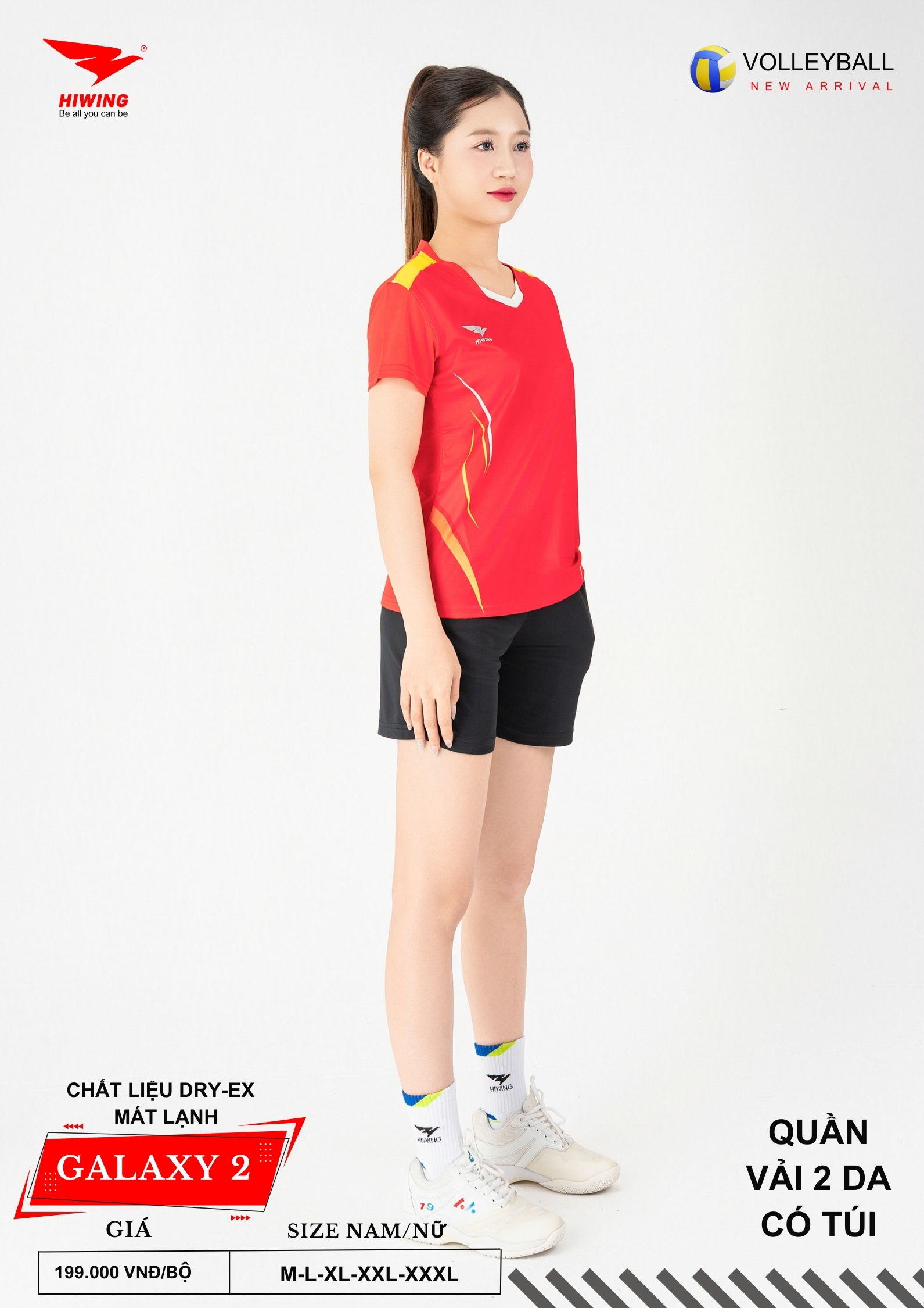 Hiwing Galaxy 2 được nghiên cứu form dáng theo chuẩn vận động viên bóng chuyền, giúp người mặc di chuyển linh hoạt – bật nhảy thoải mái – thi đấu tự tin.