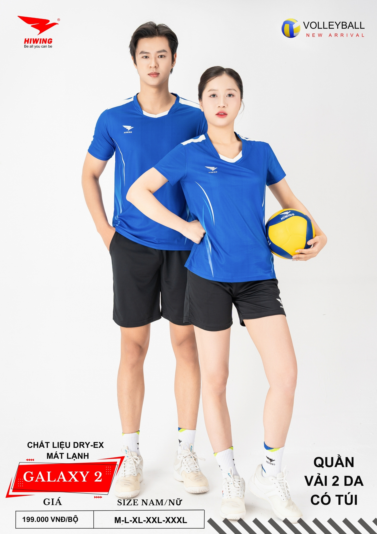 Bộ quần áo bóng chuyền Hiwing Galaxy 2 là dòng sản phẩm mới nhất đến từ thương hiệu Hiwing, được thiết kế dành riêng cho thi đấu và tập luyện chuyên nghiệp. Sở hữu form chuẩn nam – nữ, chất liệu Dry-Ex cao cấp cùng mức giá chỉ 199.000 VNĐ/bộ, Galaxy 2 là lựa chọn lý tưởng cho các đội bóng chuyền phong trào, câu lạc bộ và đồng phục thi đấu.