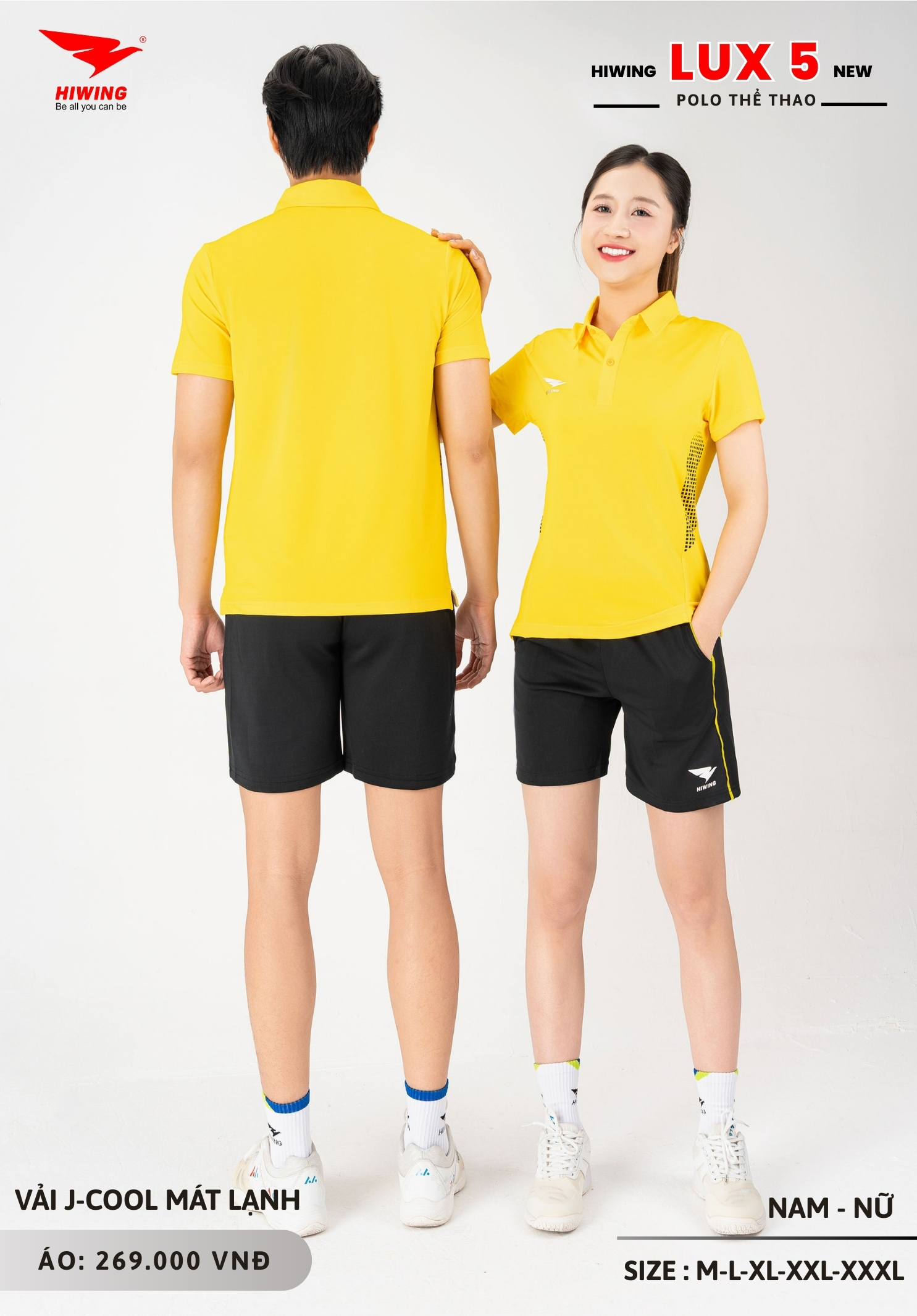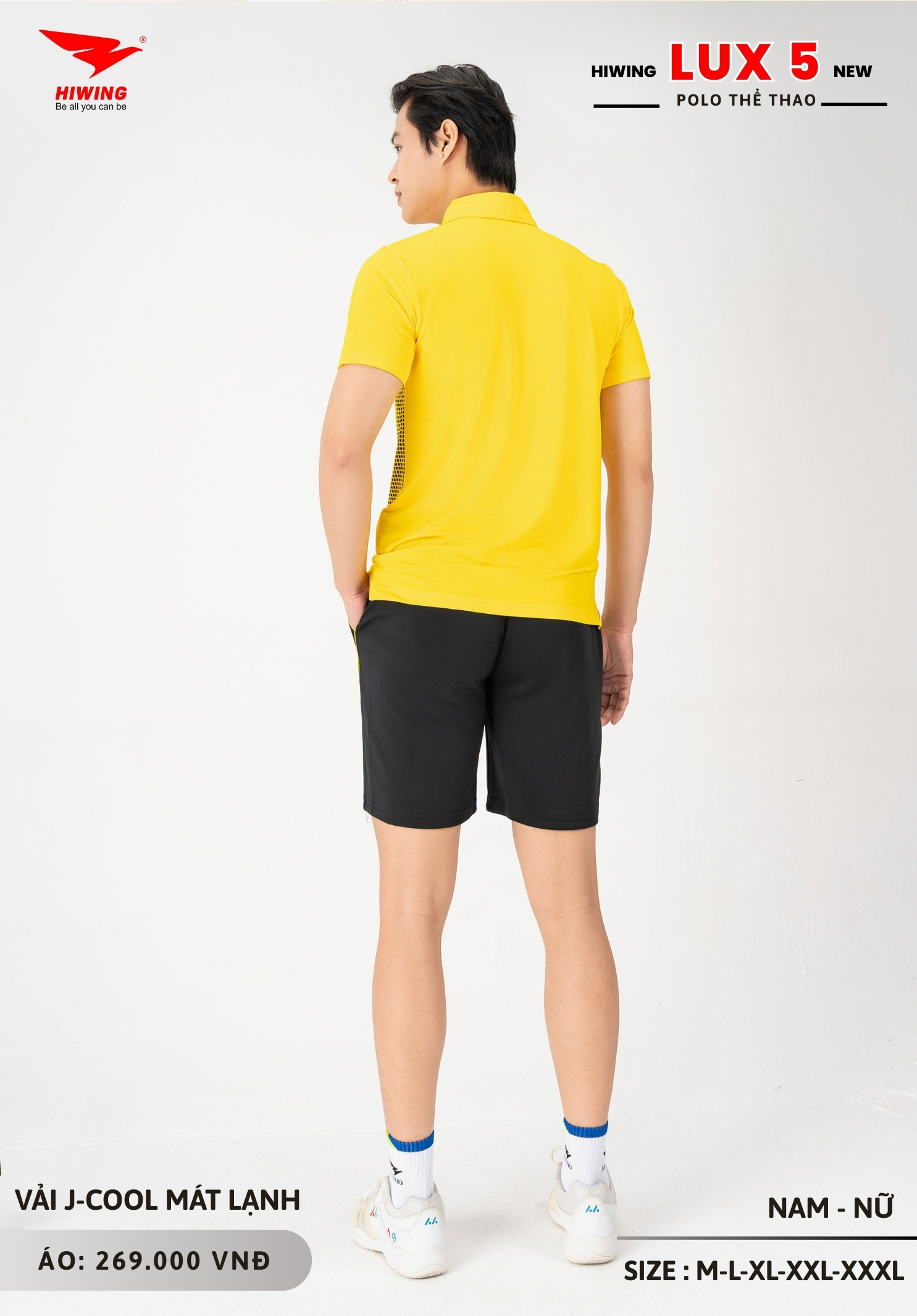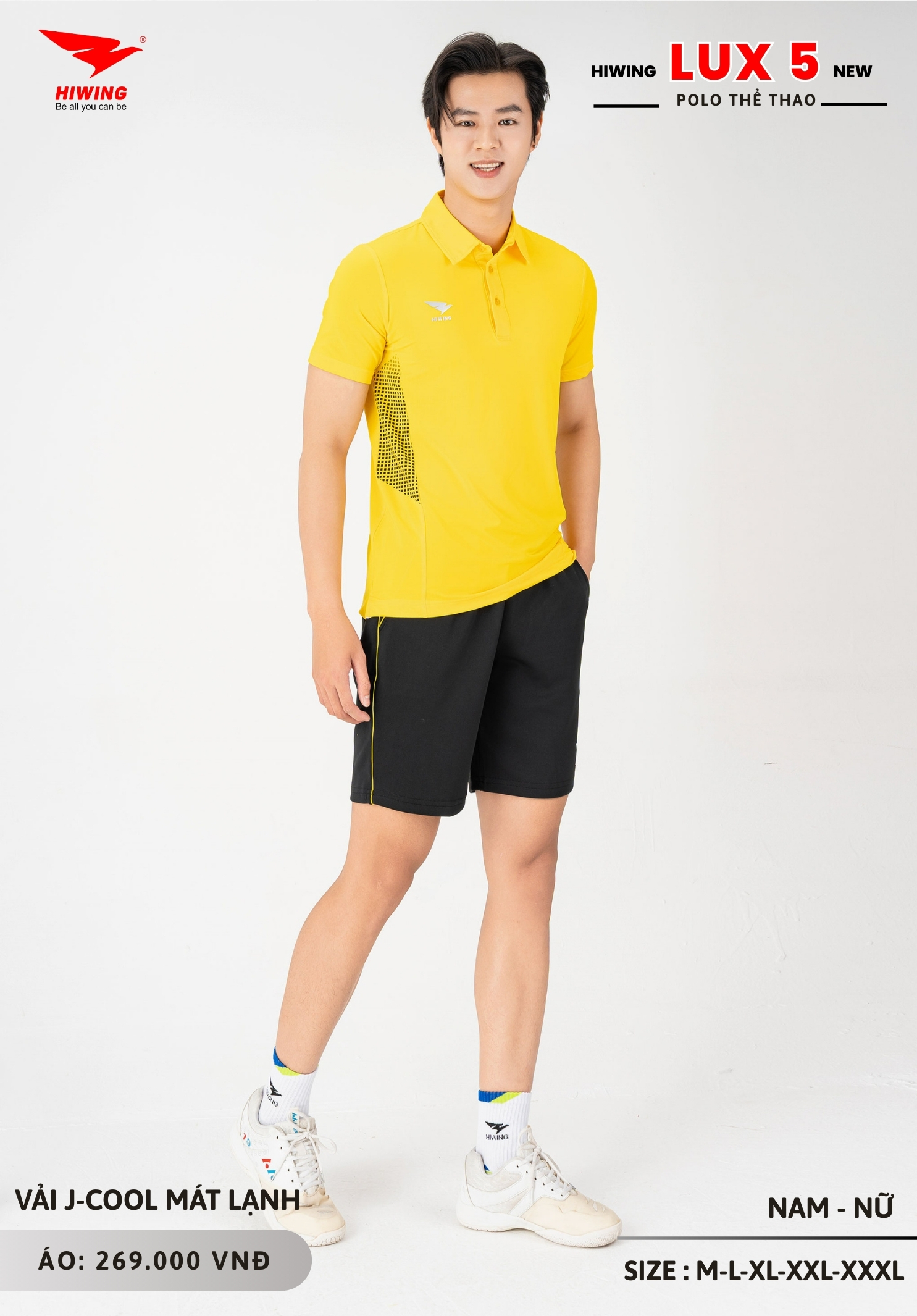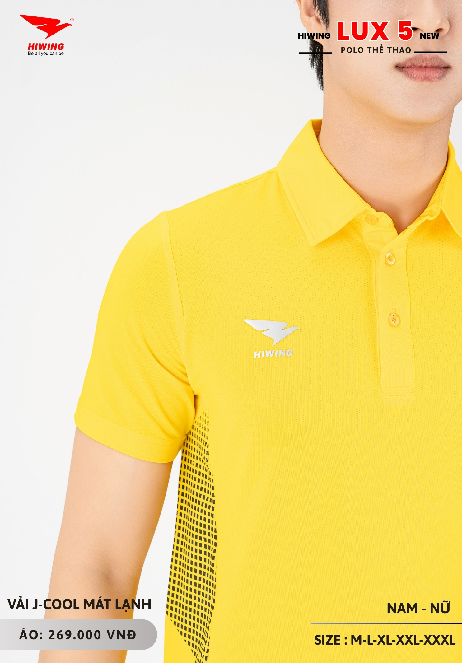 Áo polo thể thao Hiwing Lux 5 được sản xuất với 5 size từ M đến XXXL, phù hợp nhiều nhóm chiều cao và cân nặng khác nhau.